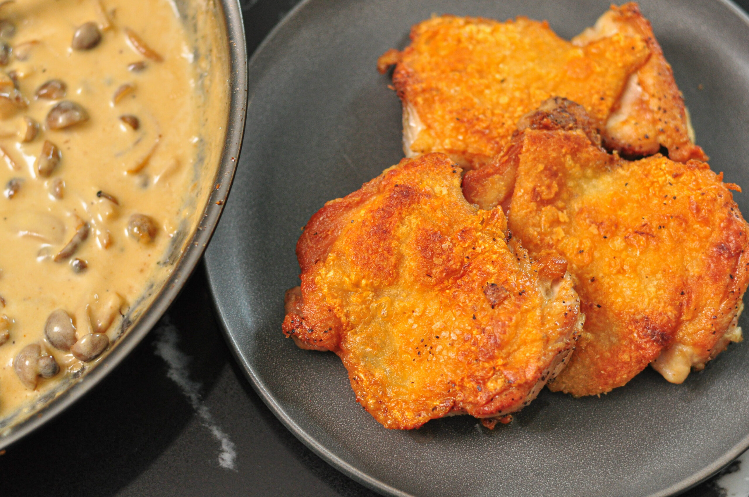 Crispy Chicken with Mushroom Dijon Cream Sauce