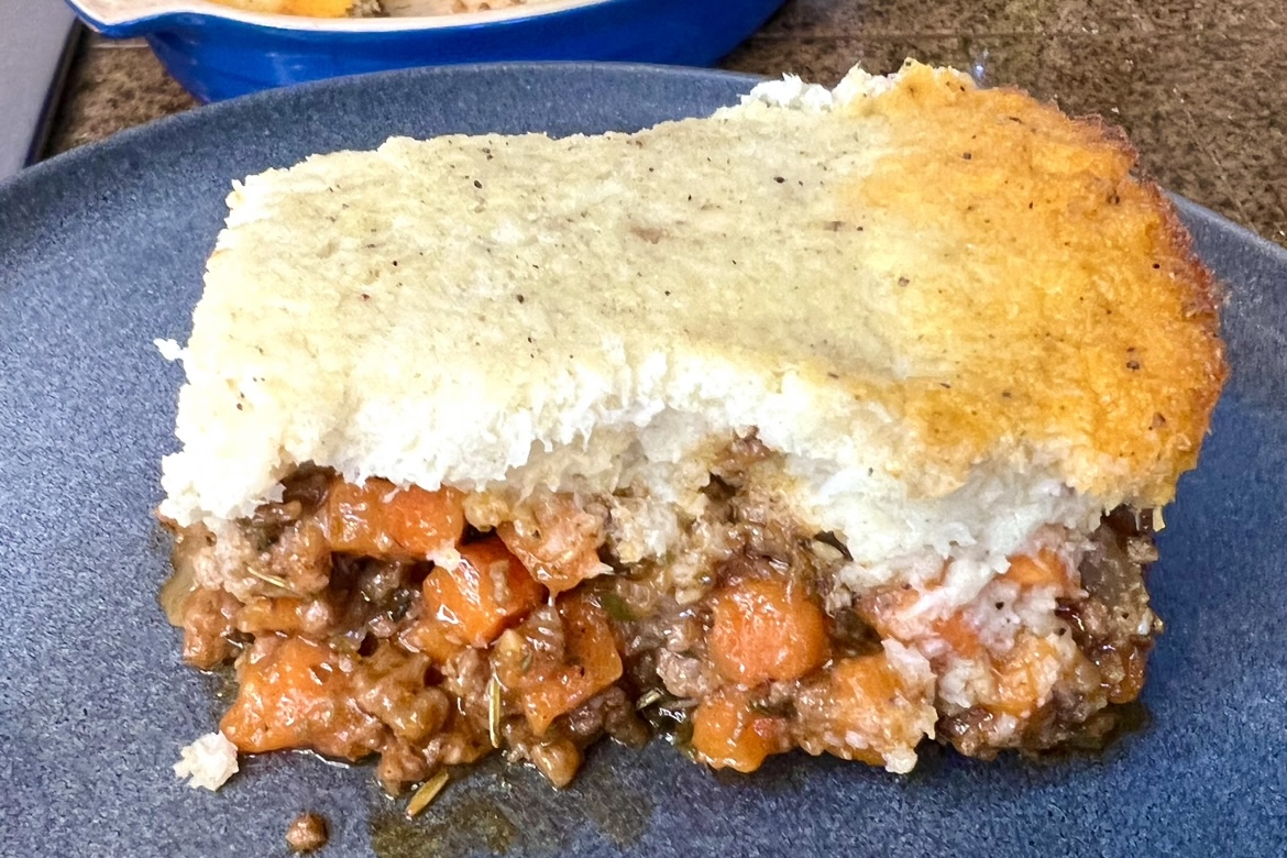 Shepard's pie is an ultimate comfort food. A traditional shepard's pie is a dish of ground beef or lamb mixed